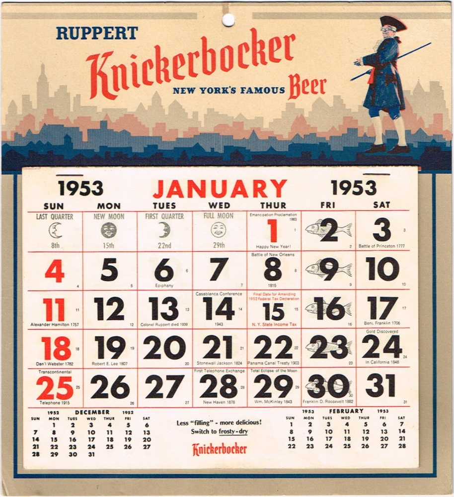 Item #87839 1953 Jacob Ruppert 1953 Calendar Paper Calendar