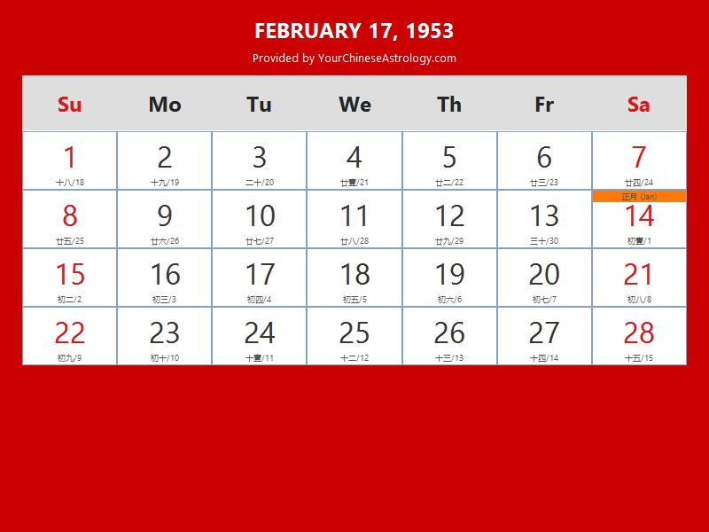 Chinese Calendar Feb 17 1953: Auspicious Things to Do and Hours Bazi