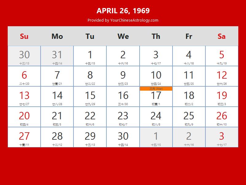 Chinese Calendar Apr 26 1969: Auspicious Things to Do and Hours Bazi