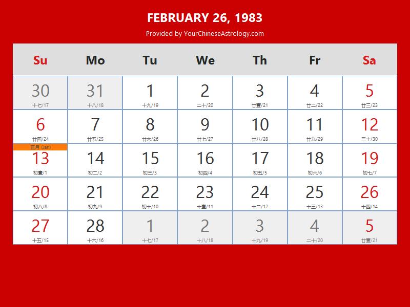 Chinese Calendar Feb 26 1983: Auspicious Things to Do and Hours Bazi