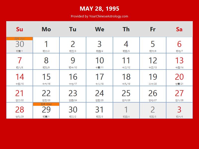 Chinese Calendar May 28 1995: Auspicious Things to Do and Hours Bazi