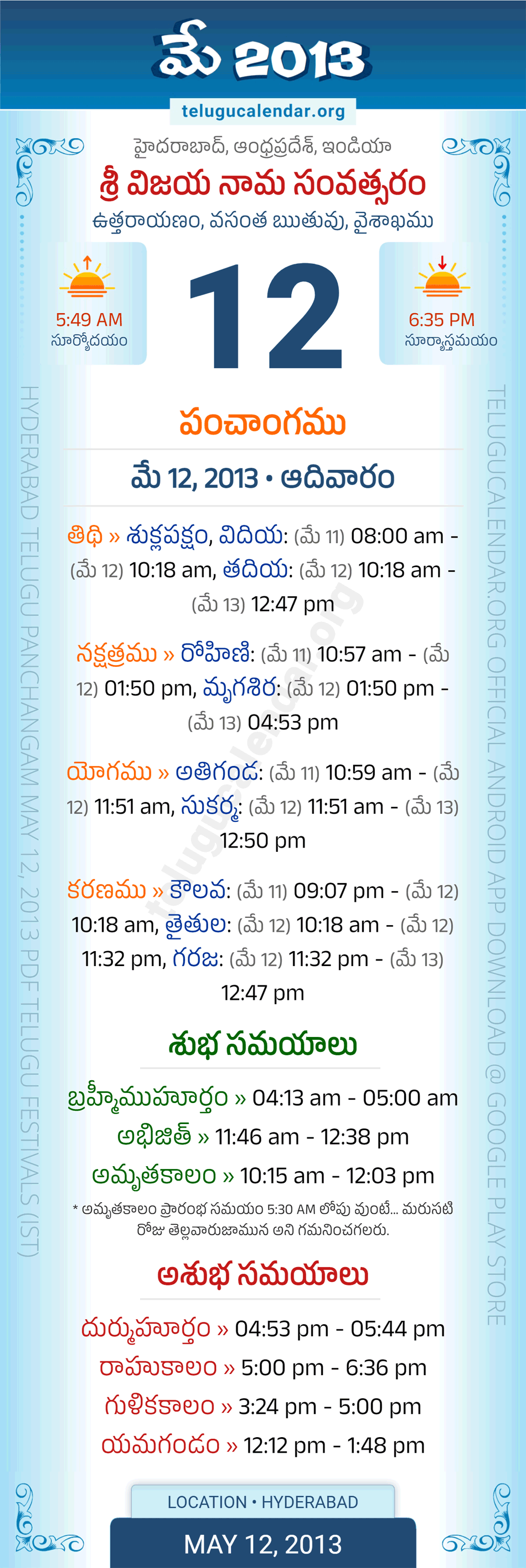 May 12 2013 Telugu Calendar Panchangam Andhra Pradesh