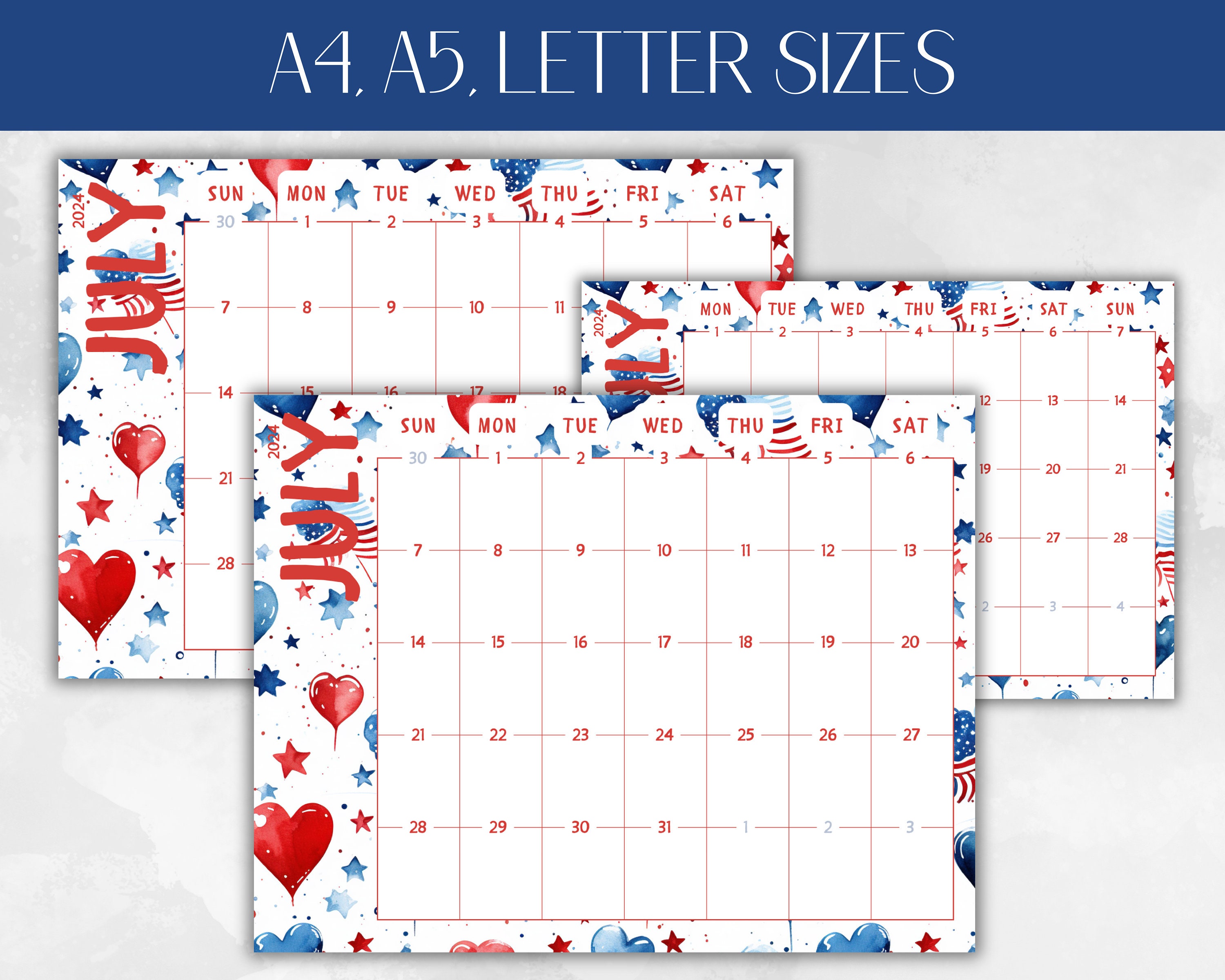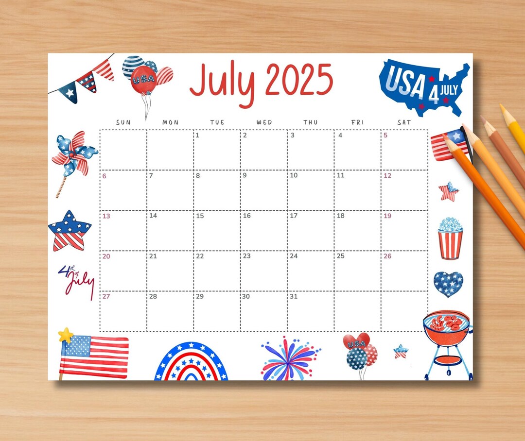 Fourth of July Printable Calendar Etsy