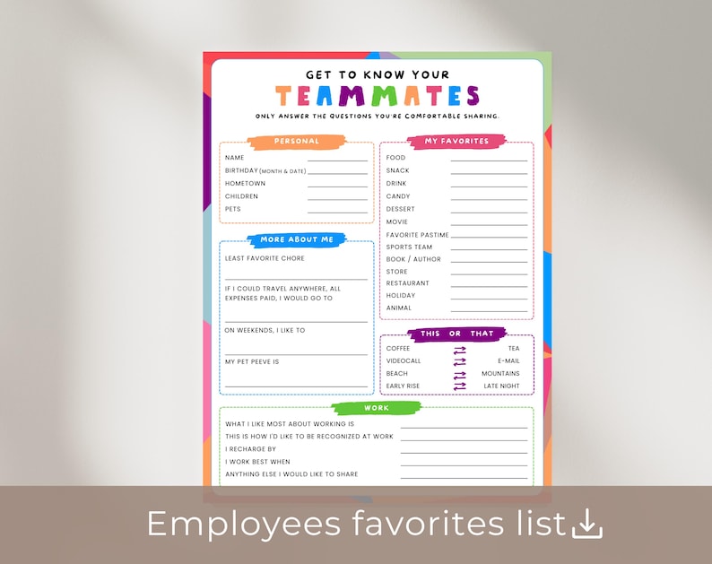 Getting to Know My Team Form Printable Get to Know Me Questionnaire