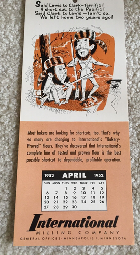 April 1952 Ad Blotter Calendar Int #39 l Milling Co Minneapolis MN FREE
