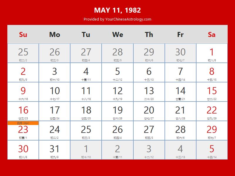 Chinese Calendar May 11 1982: Auspicious Things to Do and Hours Bazi