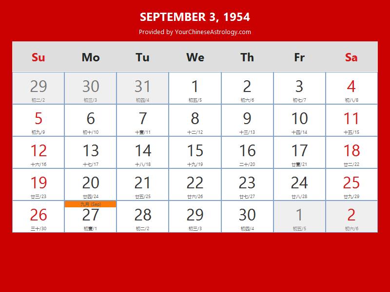 Chinese Calendar Sep 03 1954: Auspicious Things to Do and Hours Bazi