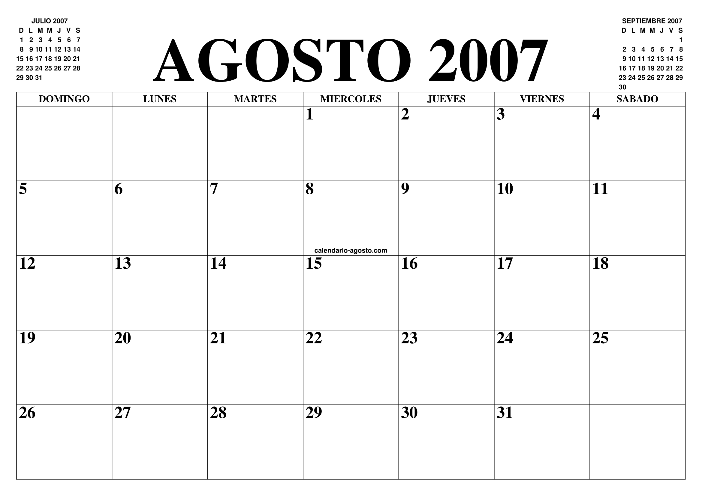 CALENDARIO AGOSTO 2007 : EL CALENDARIO AGOSTO PARA IMPRIMIR GRATIS