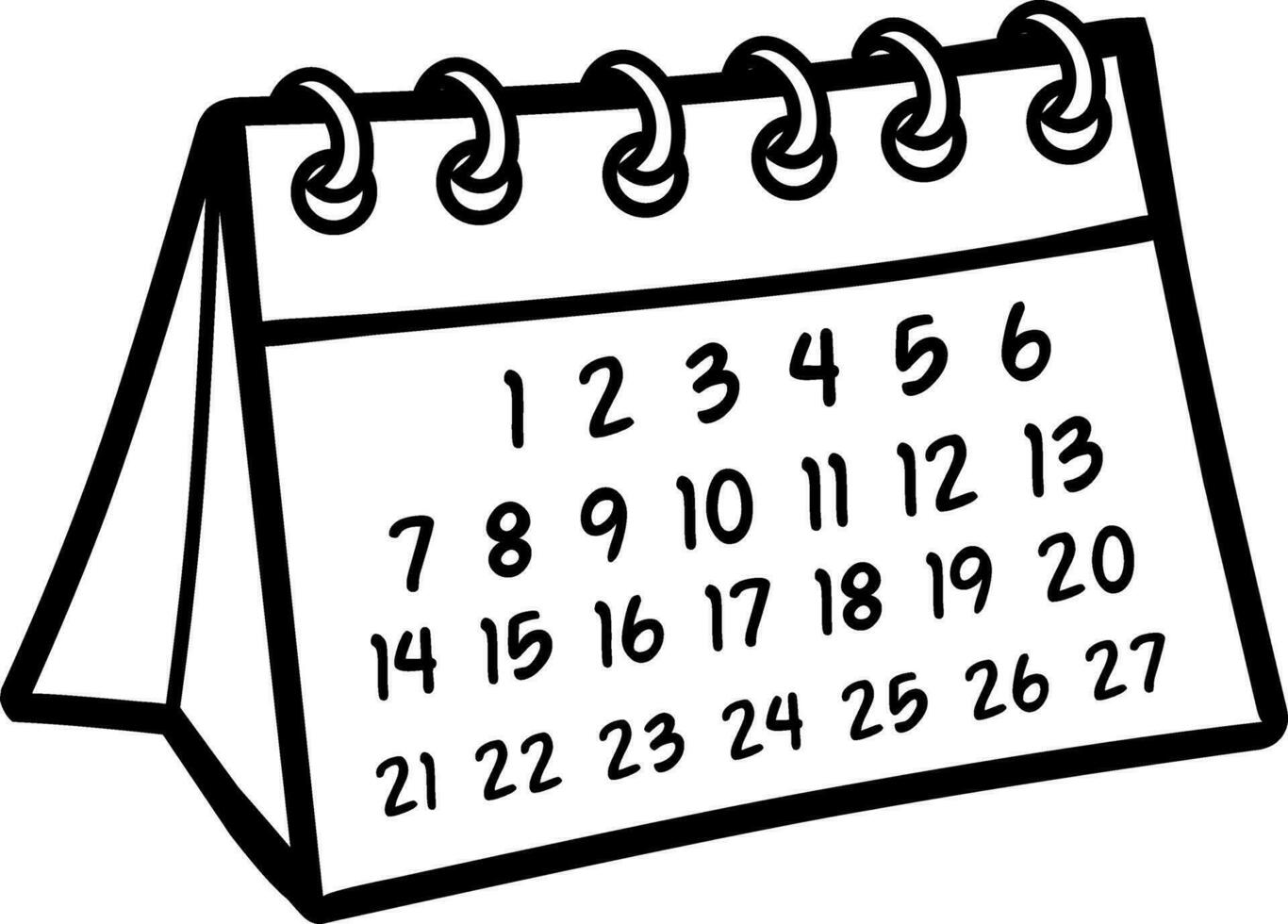Calendar Cartoon Vector Illustration Black White Stock Vector (Royalty