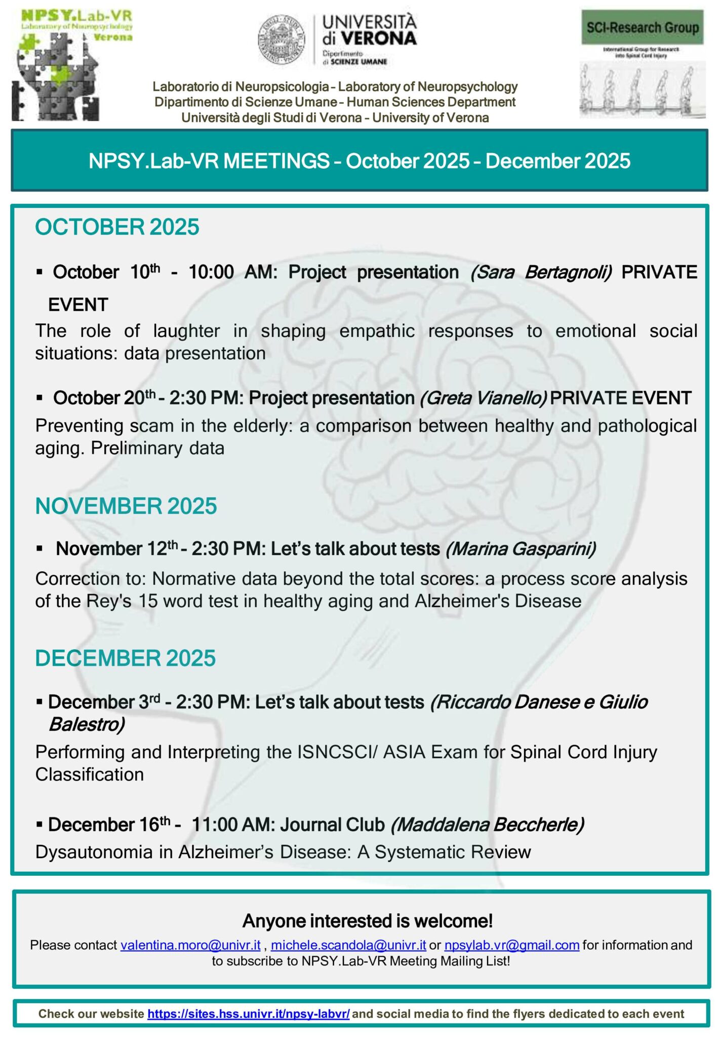 NPSY LAB VR NPSY Lab VR meeting Calendar from October to December