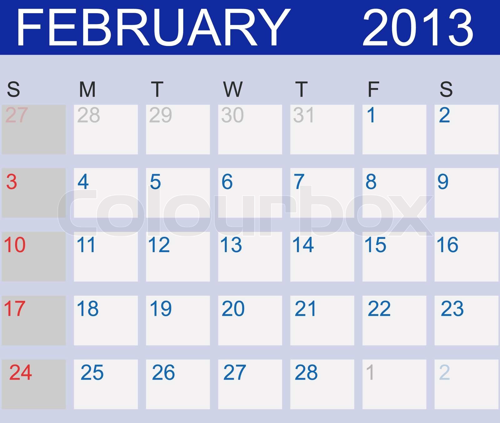 2 864 February 2013 Calendar Images Stock Photos Vectors Shutterstock