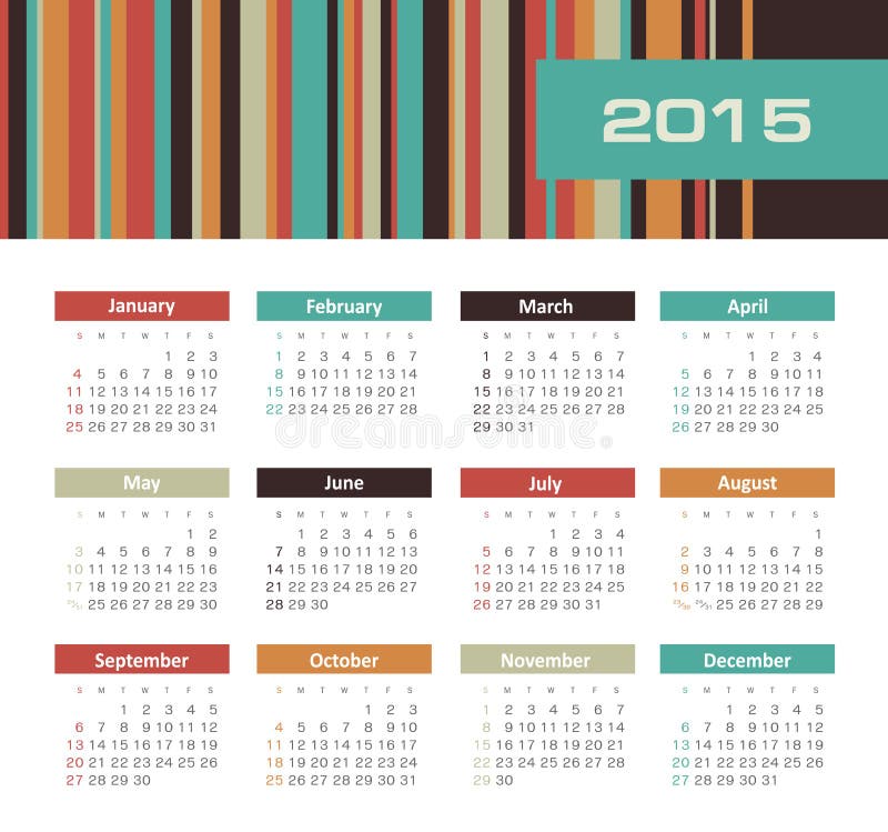 Vector illustration of year 2015 calendar colorful Stock Vector Image
