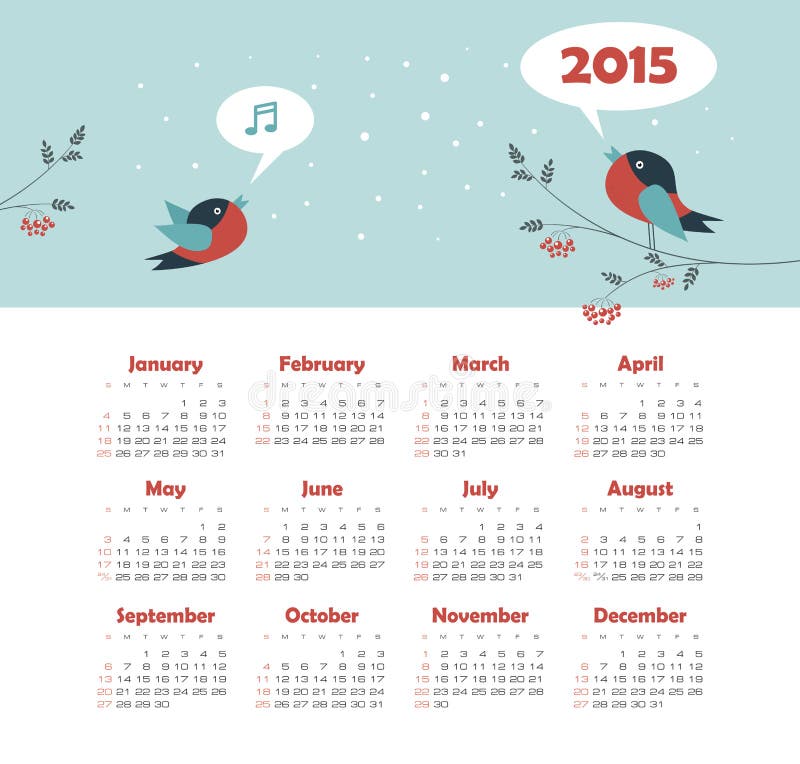 Calendar 2015 Year with Singing Birds Stock Vector Illustration of