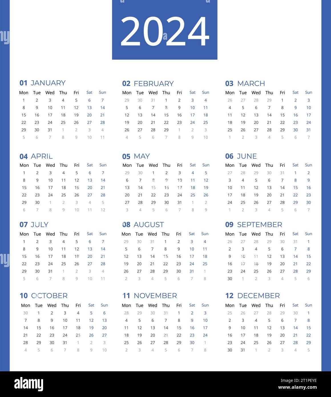Simple 2024 year calendar week Fotos und Bildmaterial in hoher
