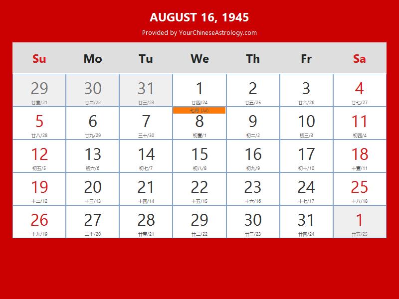 Chinese Calendar Aug 16 1945: Auspicious Things to Do and Hours Bazi