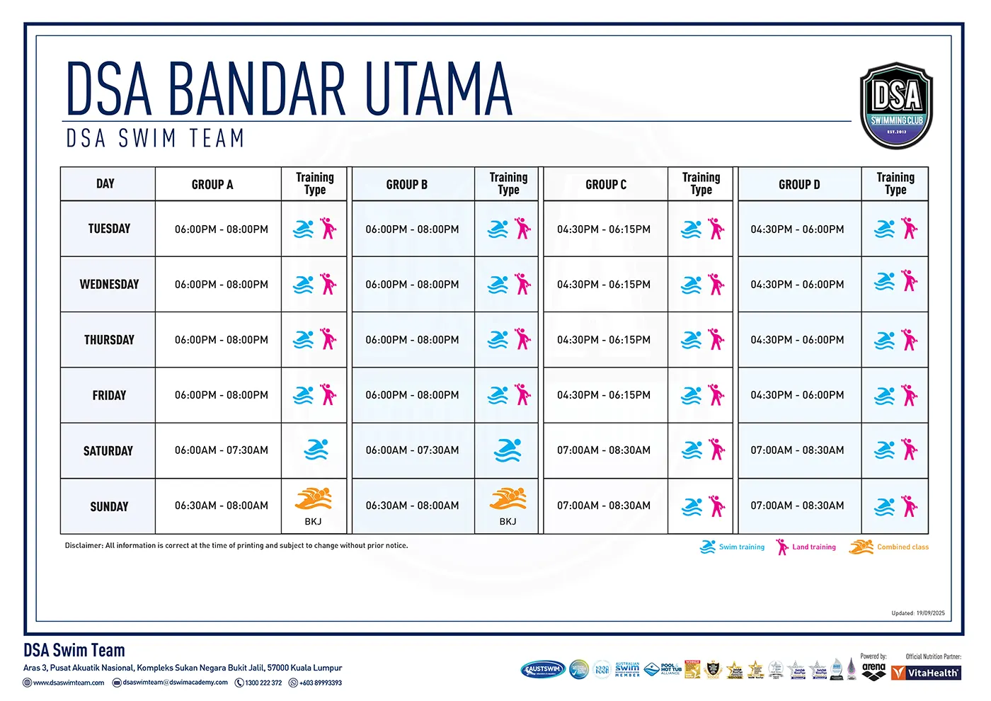 THC Squad Training Calendar 19 9 DSA Swim Team DSA