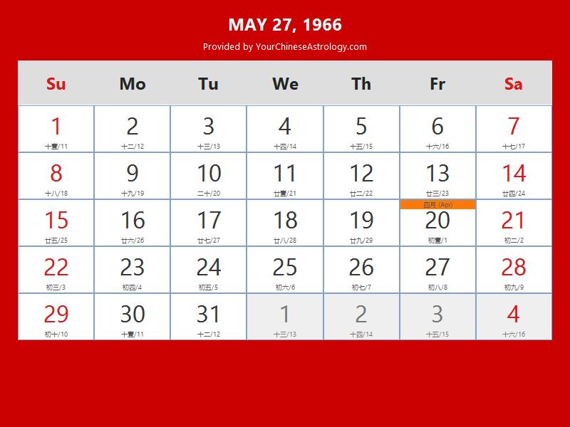 Chinese Calendar May 27 1966: Auspicious Things to Do and Hours Bazi