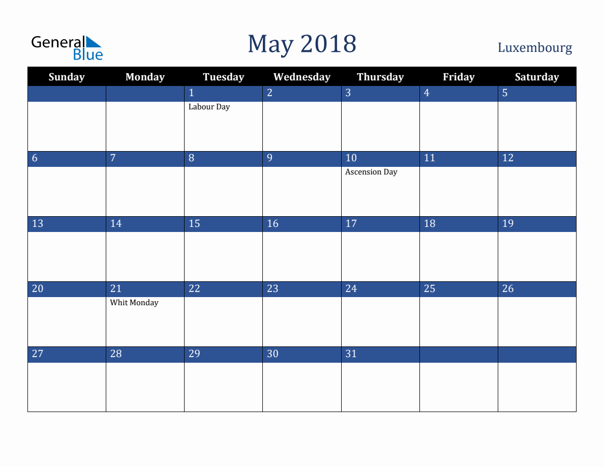May 2018 Luxembourg Holiday Calendar