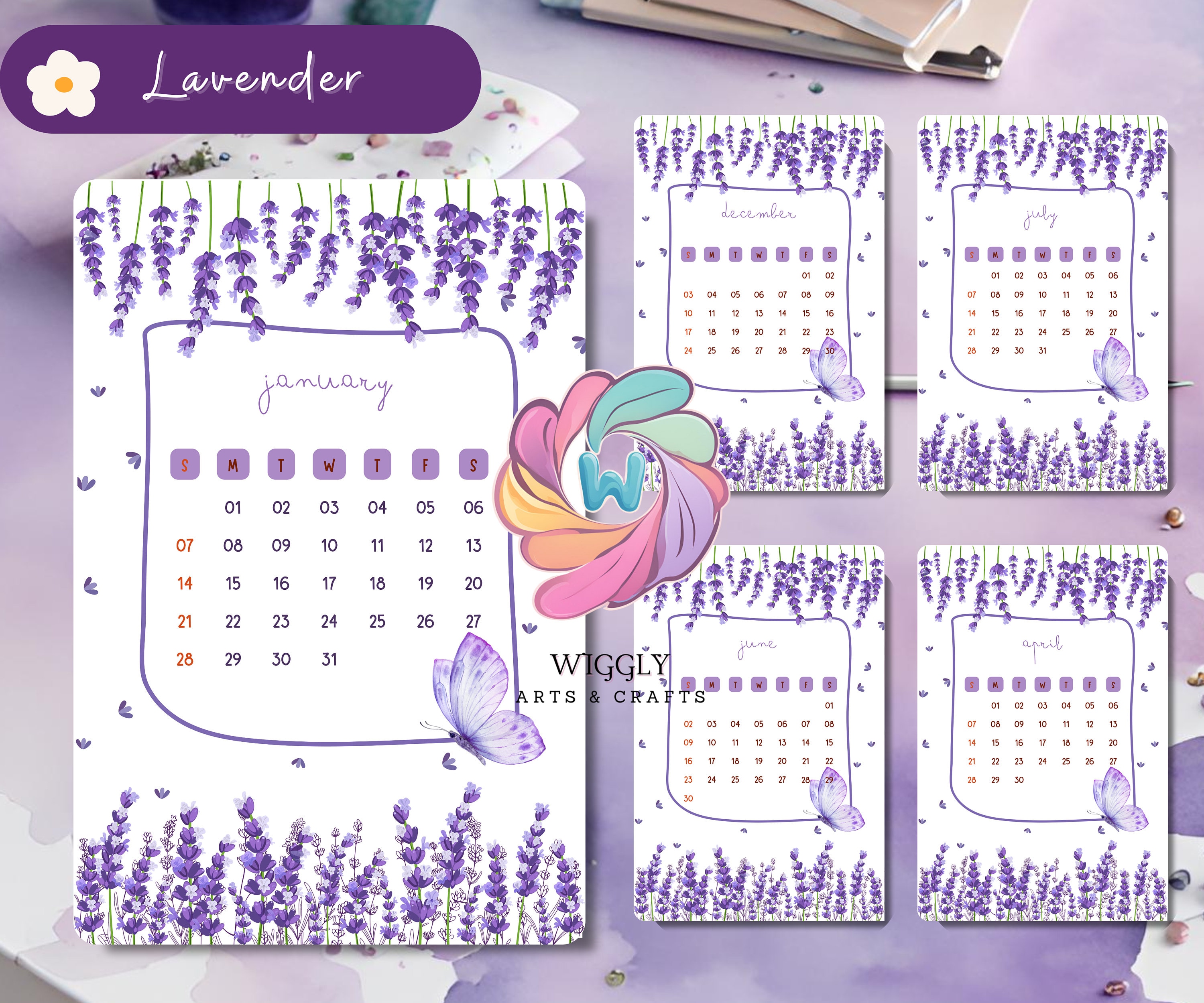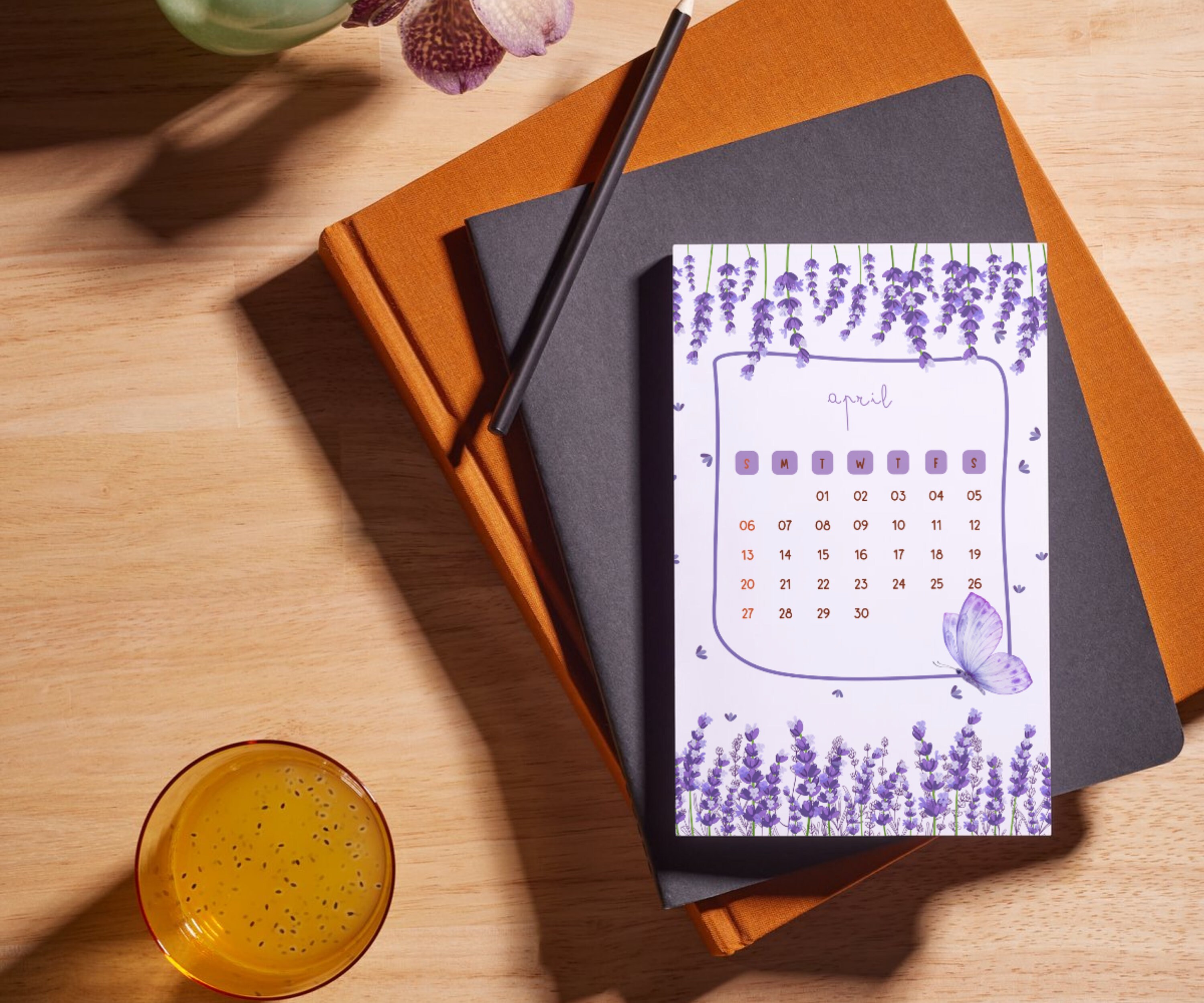 Calendar 2025 Desktop Calendar Flower Tulips Daisy Lavender
