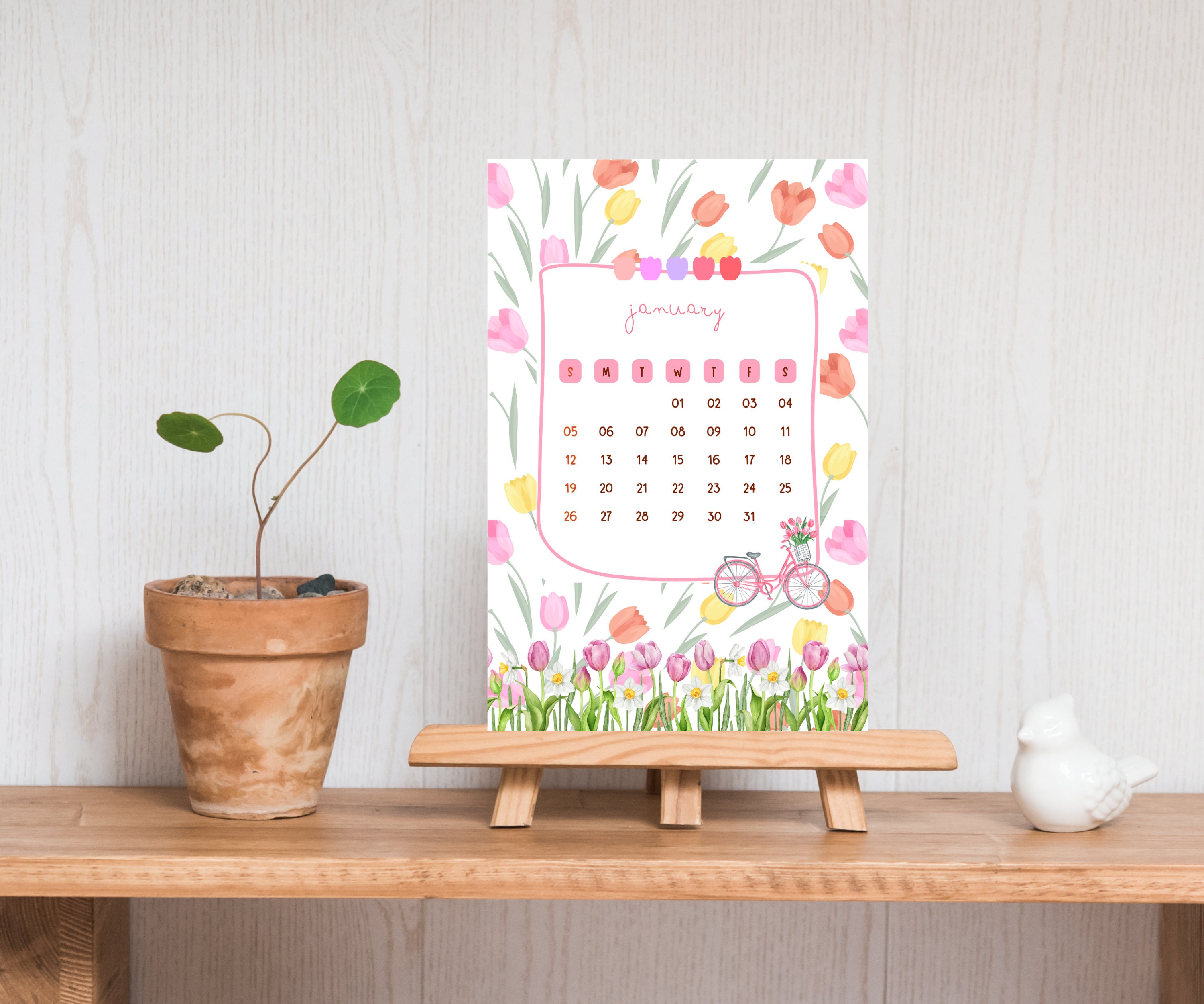 Printable Calendar 2025 Desktop Calendar Flower Tulips Daisy