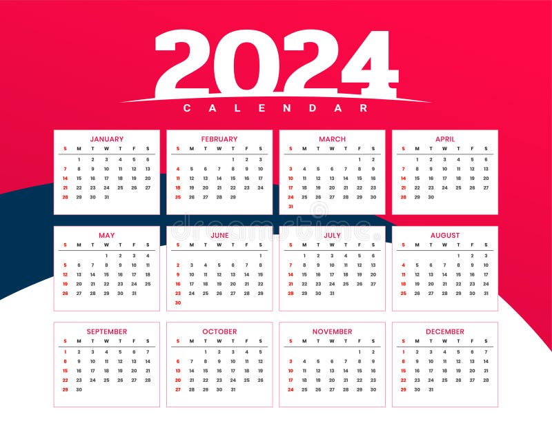 Modern 2024 Wall Calendar Template a Office Stationery Ector Stock