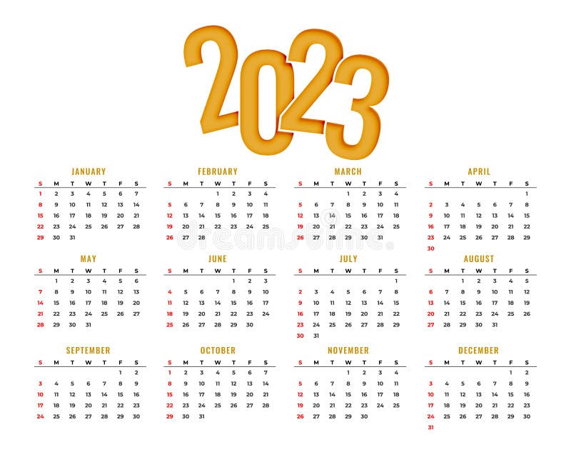 Simple 2023 Page Calendar for Office Wall Design Stock Vector