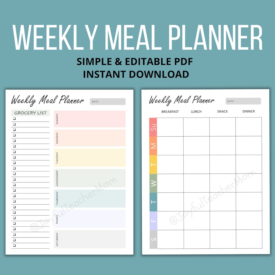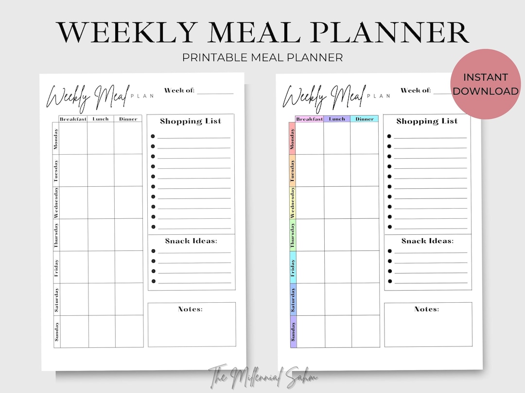 Printable Weekly Meal Planner Instant Digital Download Etsy