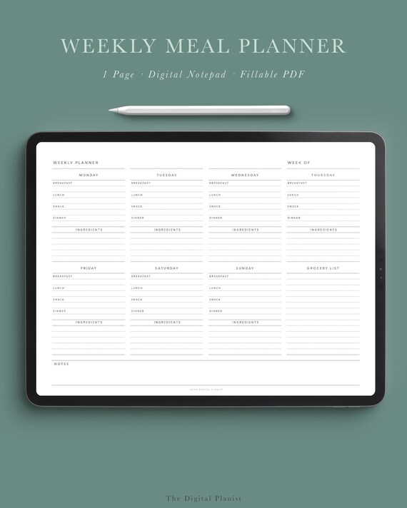 Digital meal plan template food planner template meal planning template