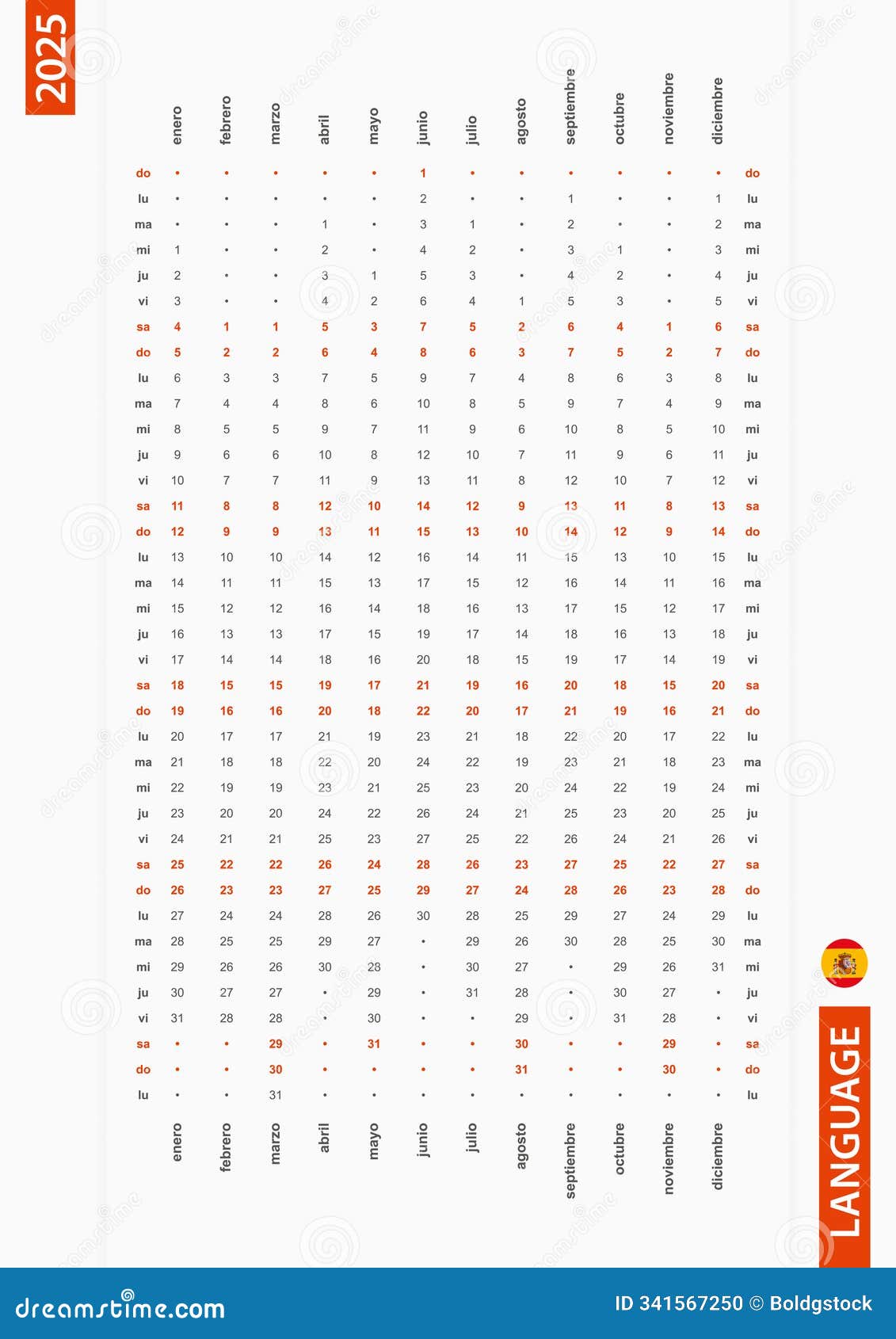 2025 Year German Calendar Printable Vector Illustration for Germany