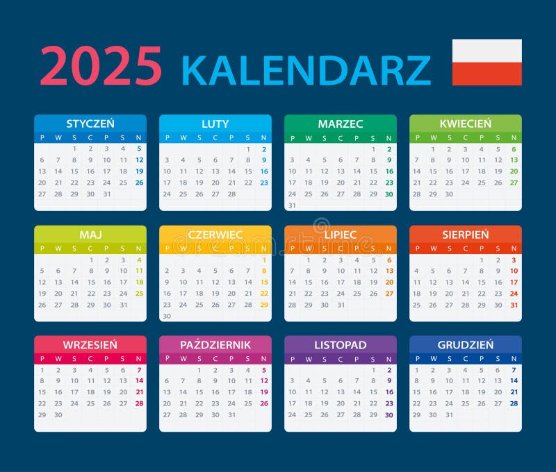 2025 Calendar Vector Template Graphic Illustration Polish Version