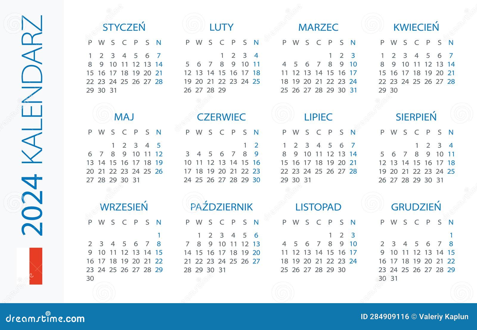 2024 Calendar Vector Illustration Polish Version Stock Vector