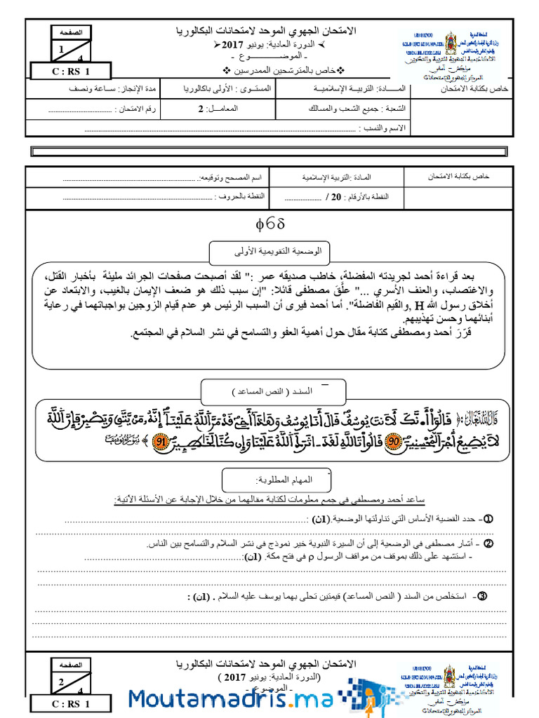 examens regional 1bac marrakech safi islam 2017 n PDF
