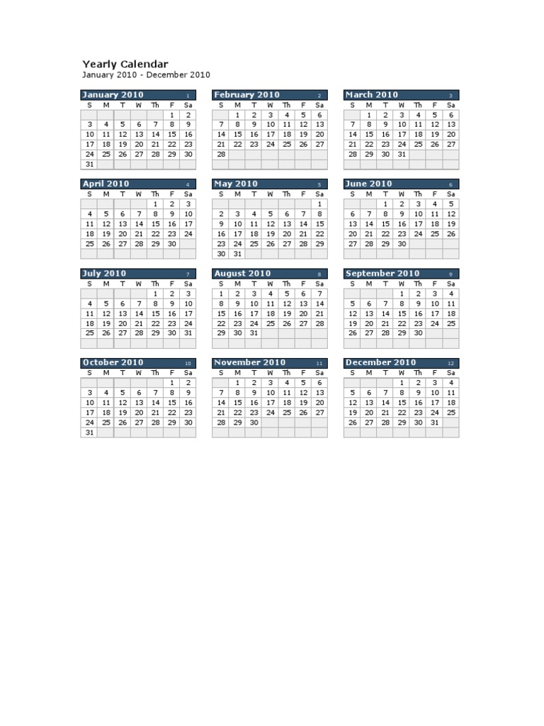 Yearly Calendar: January 2010 February 2010 March 2010 PDF