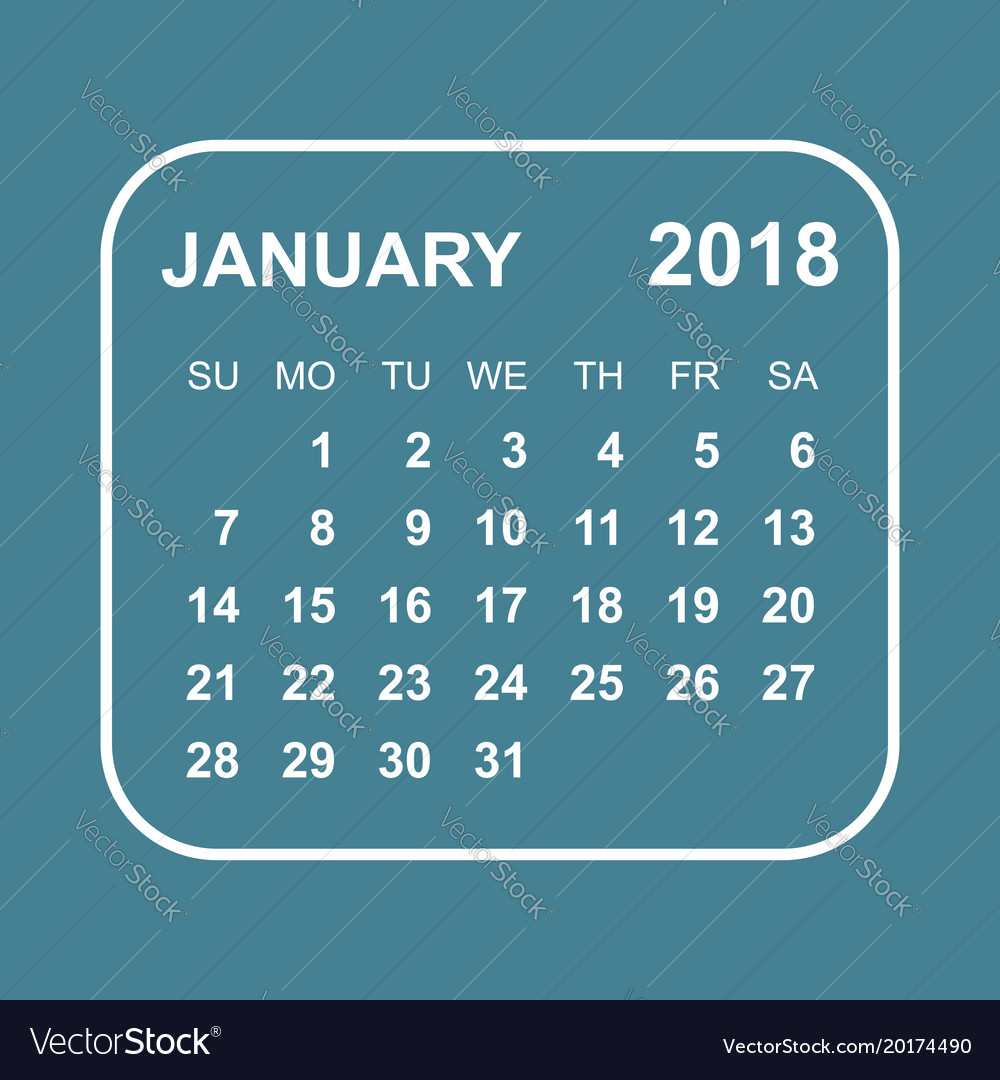 Monthly Calendar January 2018 168615 Vector Art at Vecteezy