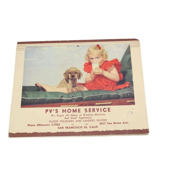 Wall Decor 1952 Wall Calendar Girl Milk Puppy Pvs Home Service San