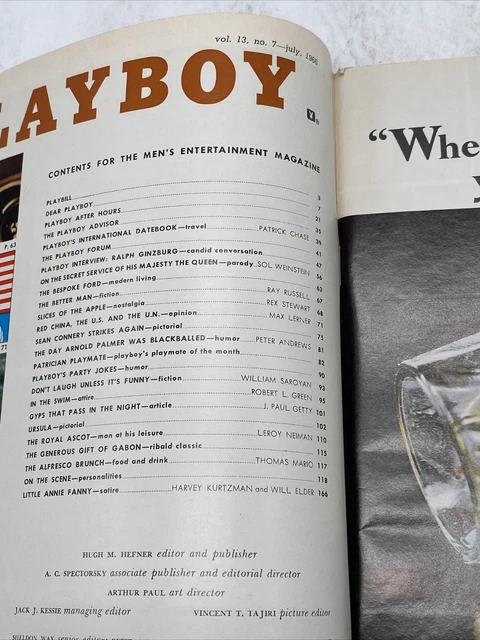 PLAYBOY MAGAZINE JULY 1966 Ursula Andress Sean Connery Tish Howard EUR
