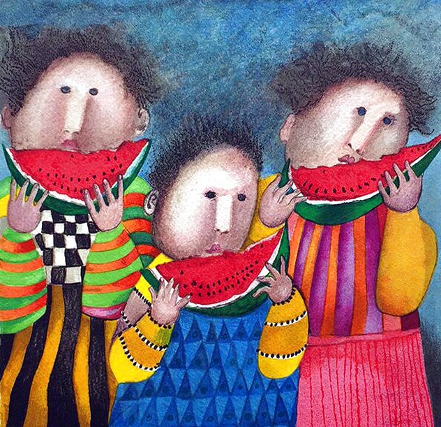 Sleeping Child with Pig Etching 21x26 by Graciela Rodo Boulanger For