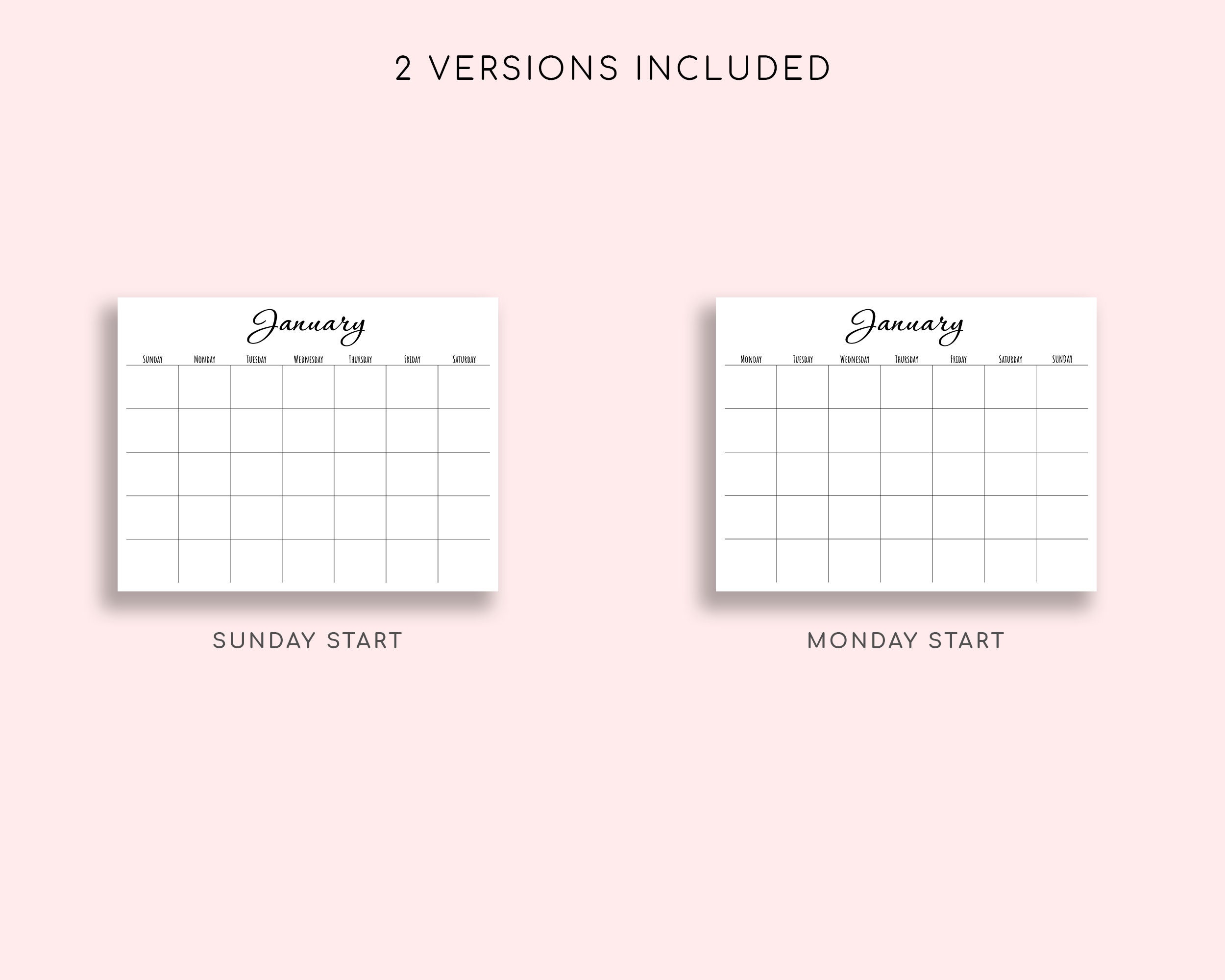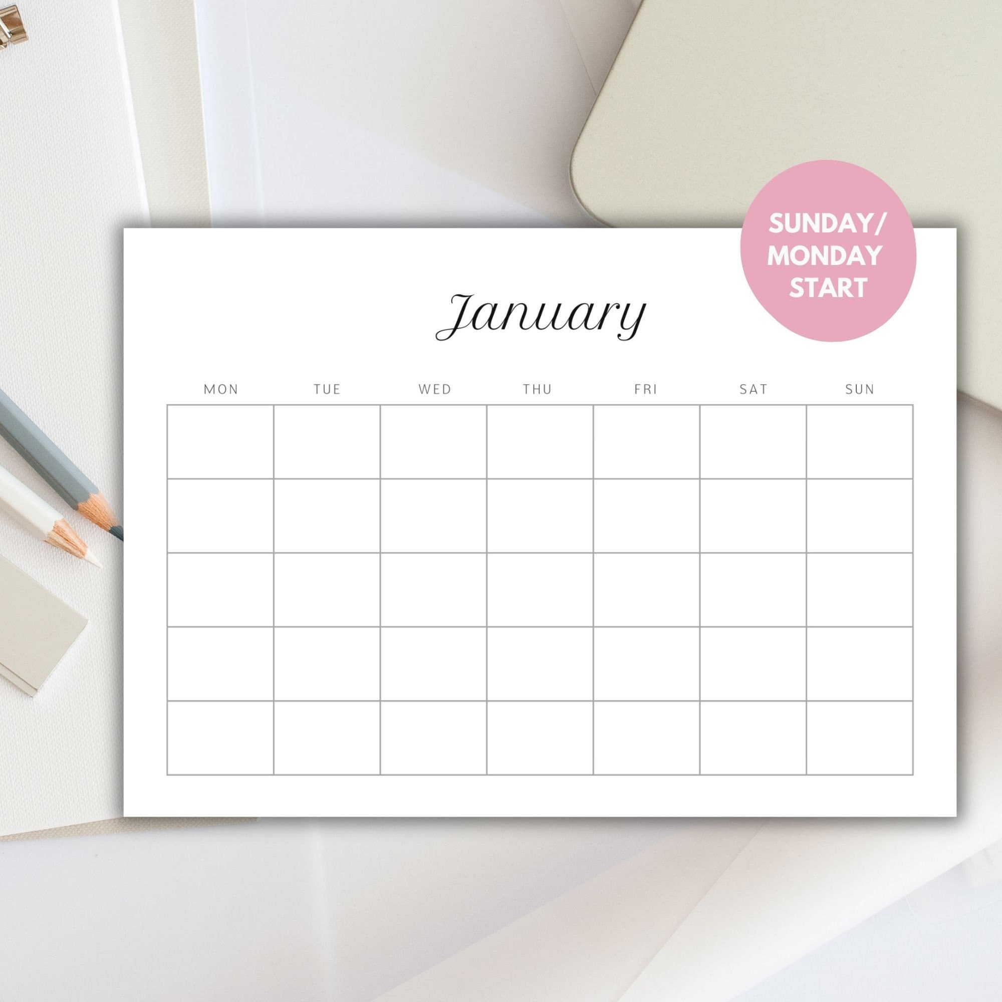 Printable Blank Monthly Calendar Monday/sunday Start Etsy