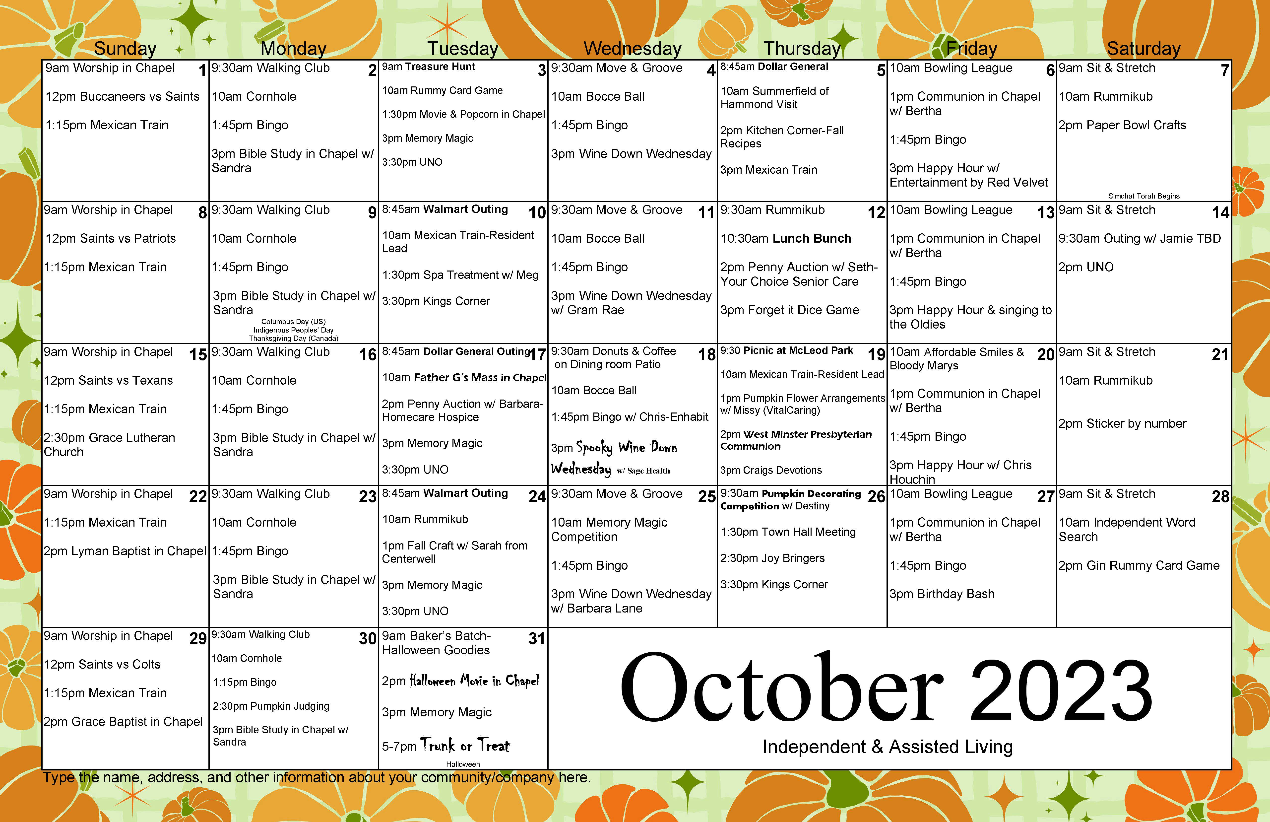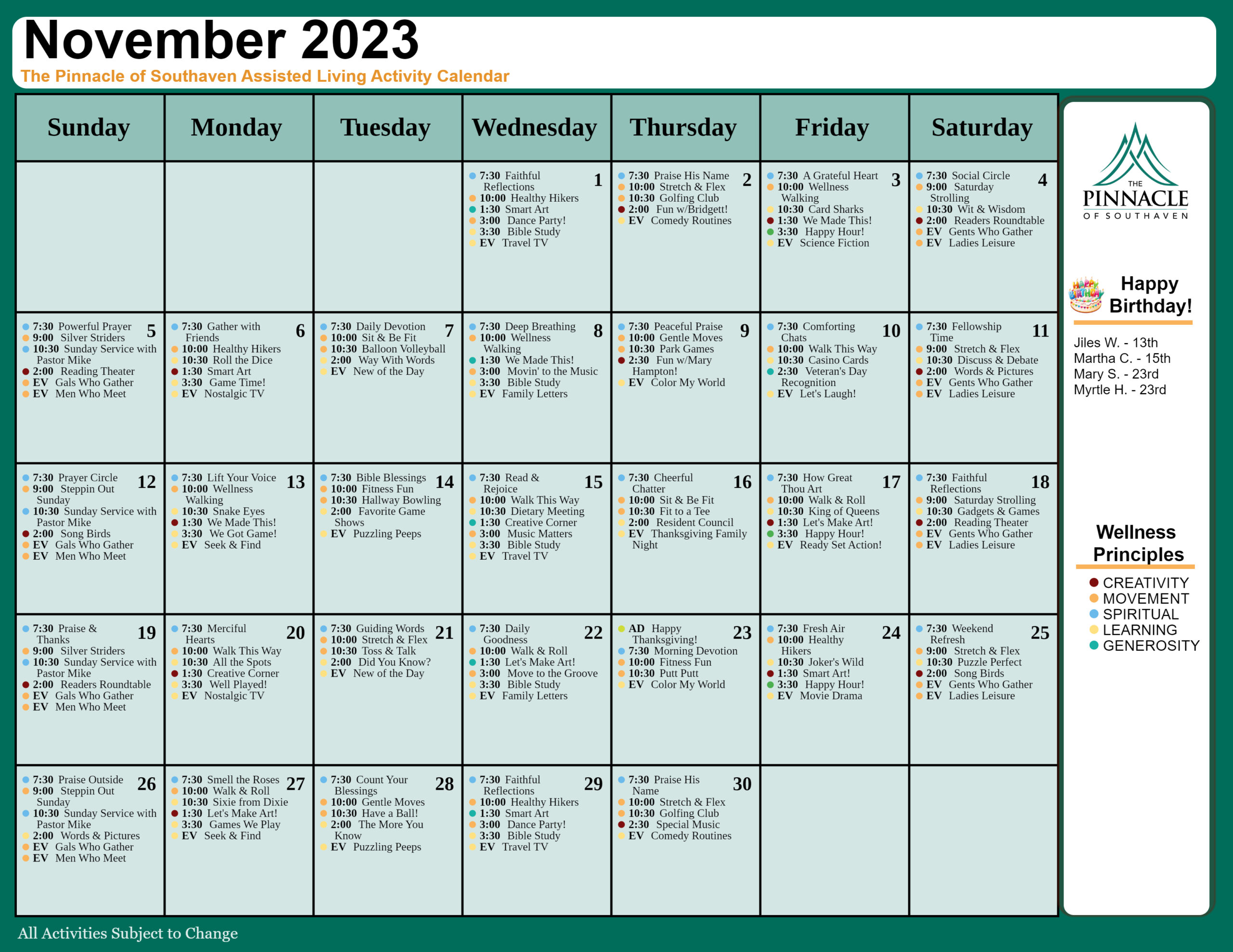 Here are some of the images for Calendar Of Events For Assisted Living Facility that we found in our website database.