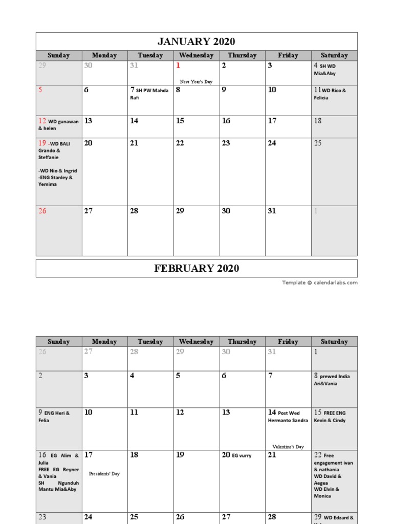 2020 Monthly Us Holidays Calendar PDF Traditions Festival