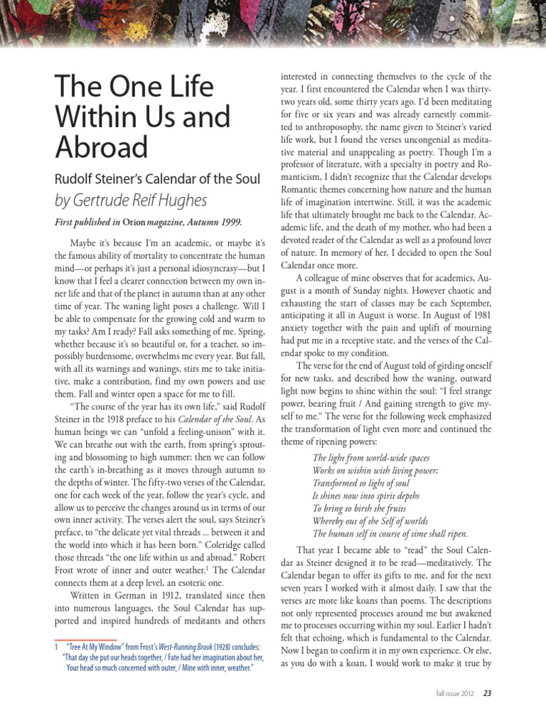 General Anthroposophy Research on the Calendar of the Soul