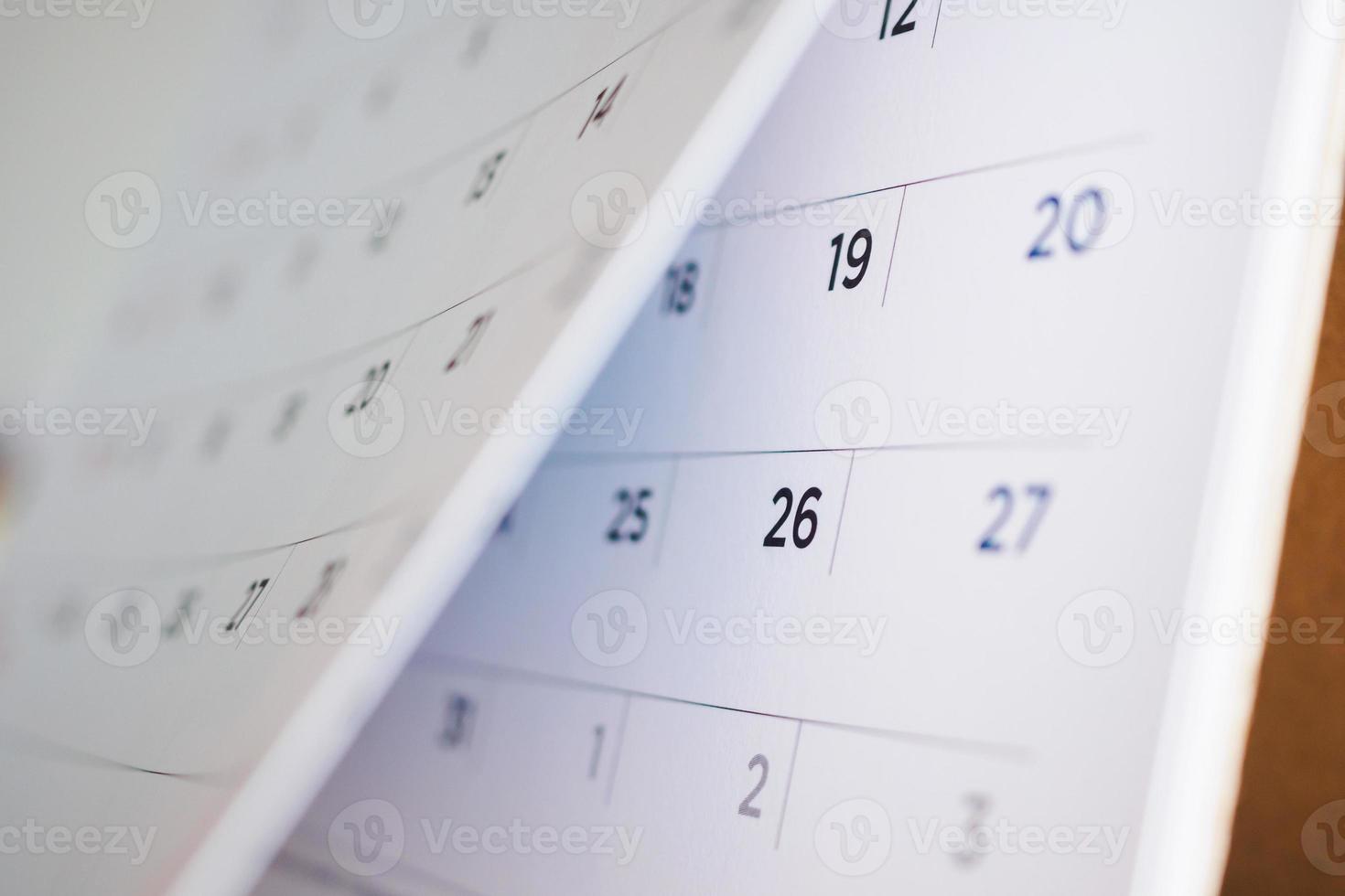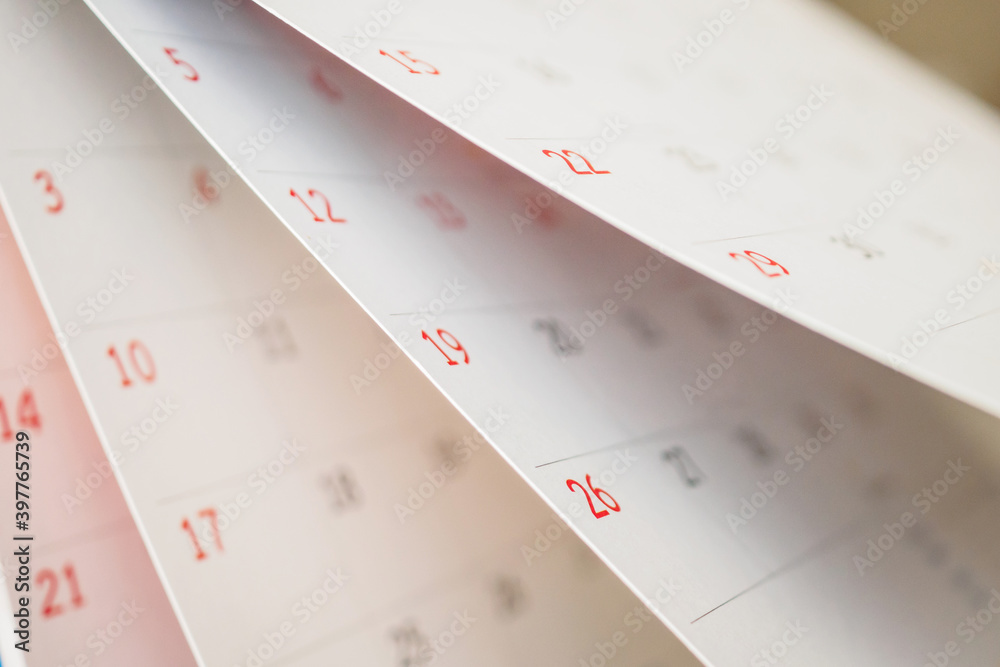 Calendar Page Flipping Sheet Close Up on Office Table Background