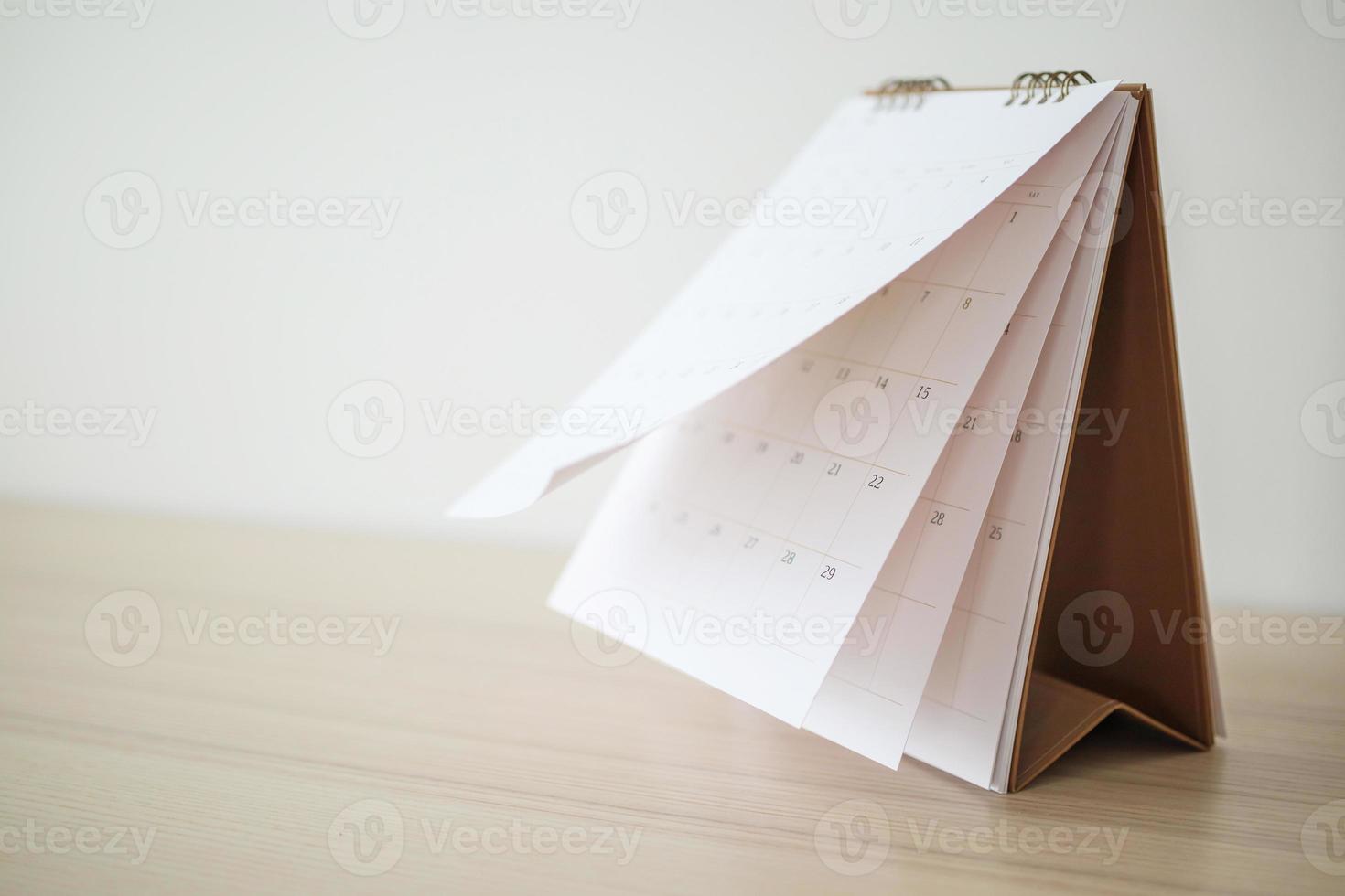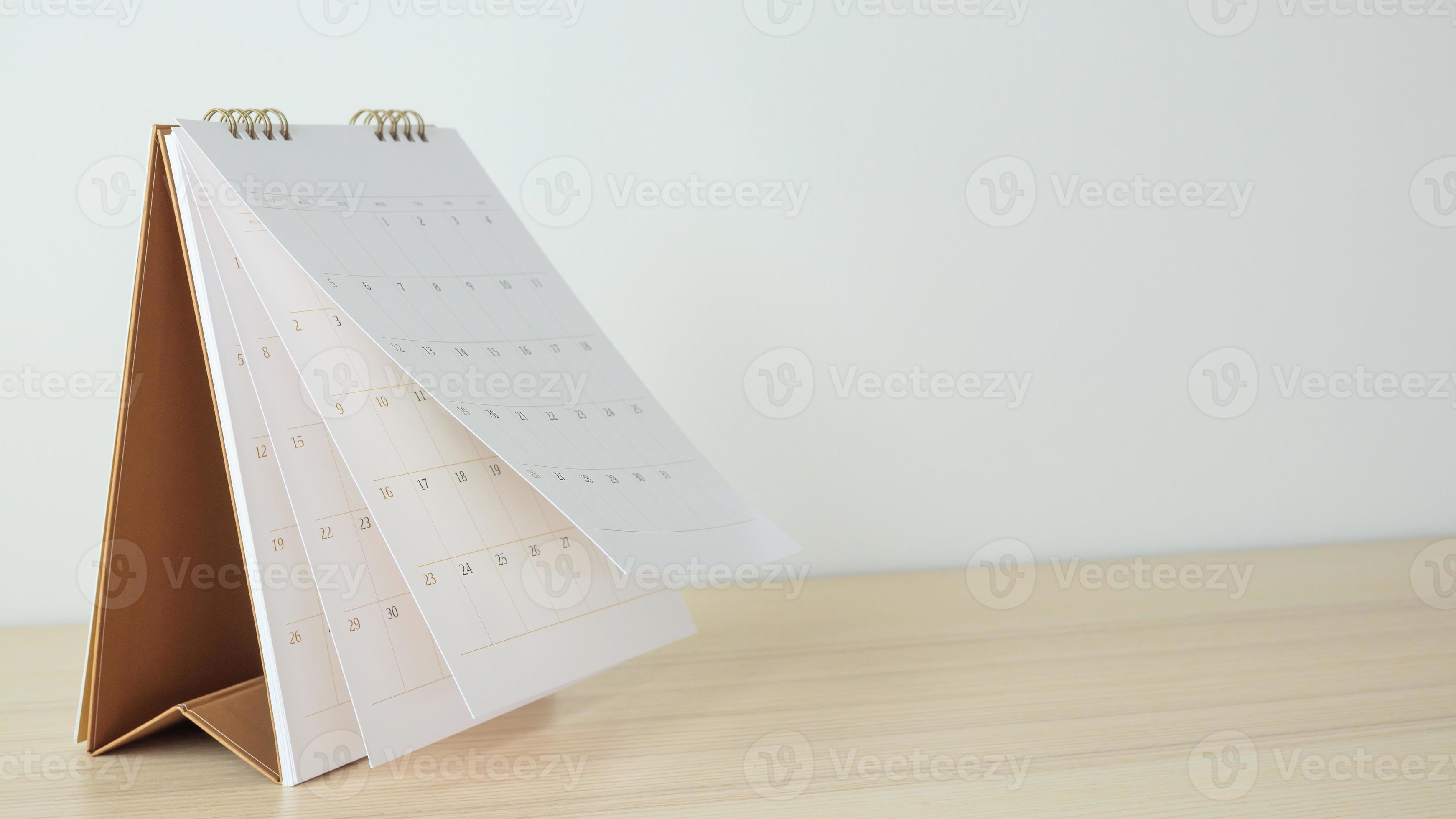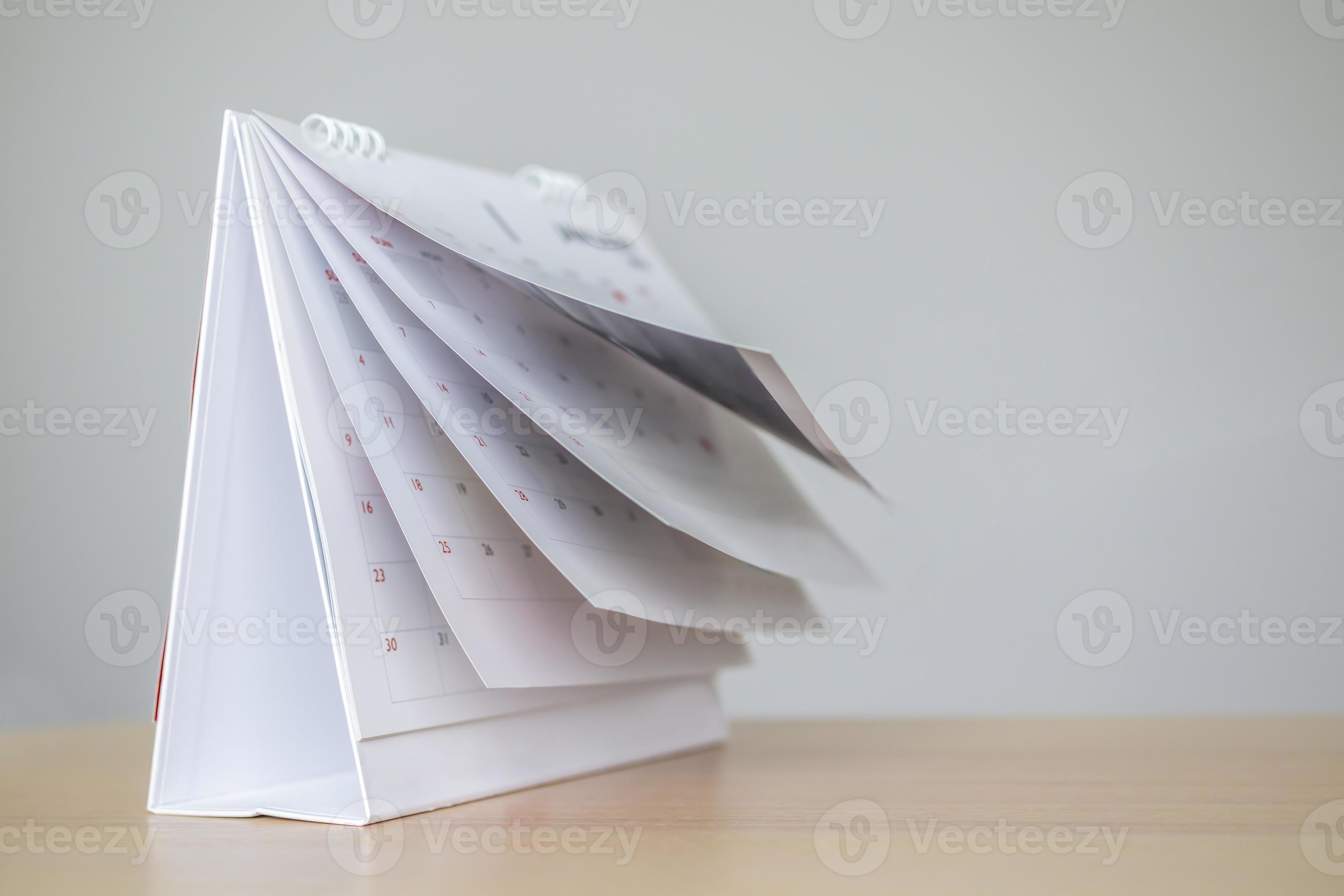Calendar Page Flipping Sheet on Wood Table Background Business Schedule