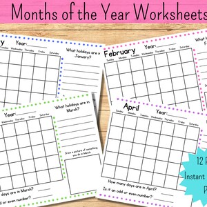 Calendar Practice Worksheets School Year 2024 2025 = 12 Months Year