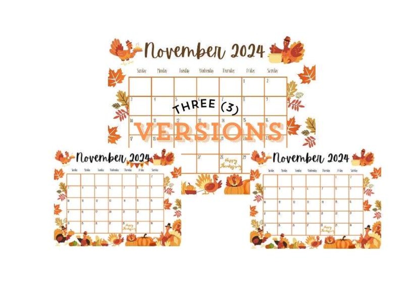 3 EDITABLE Digital Printable November 2024 Calendars thanksgiving Etsy