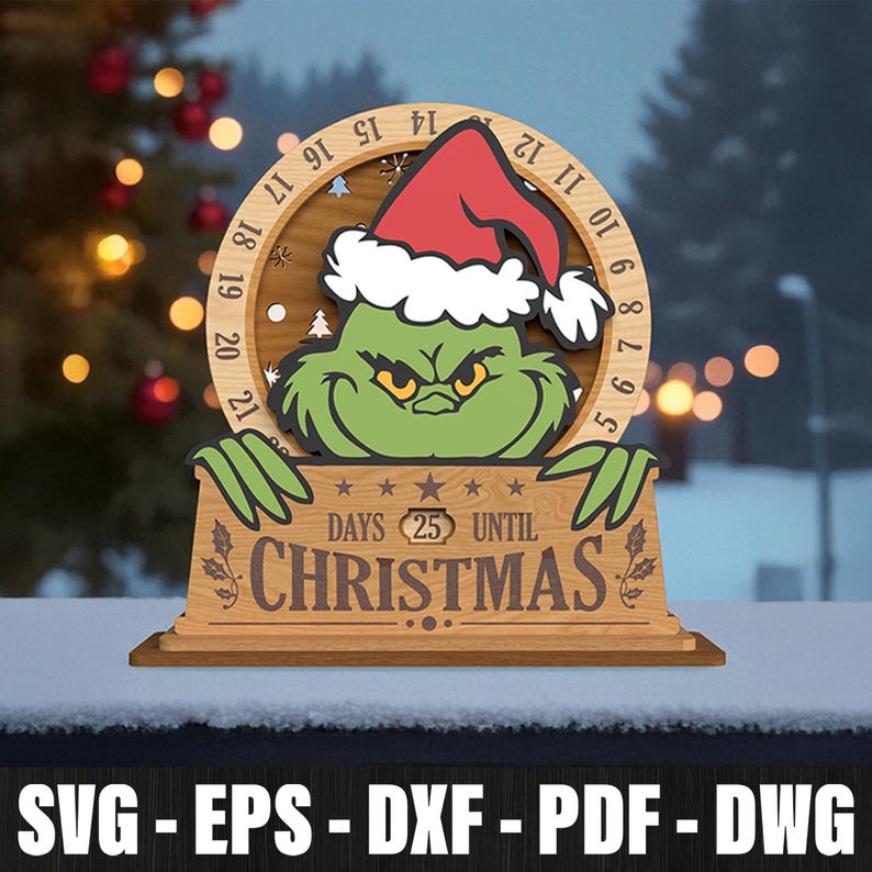 Grinch Countdown Advent Calendar Stand Laser Cut Christmas Grinch