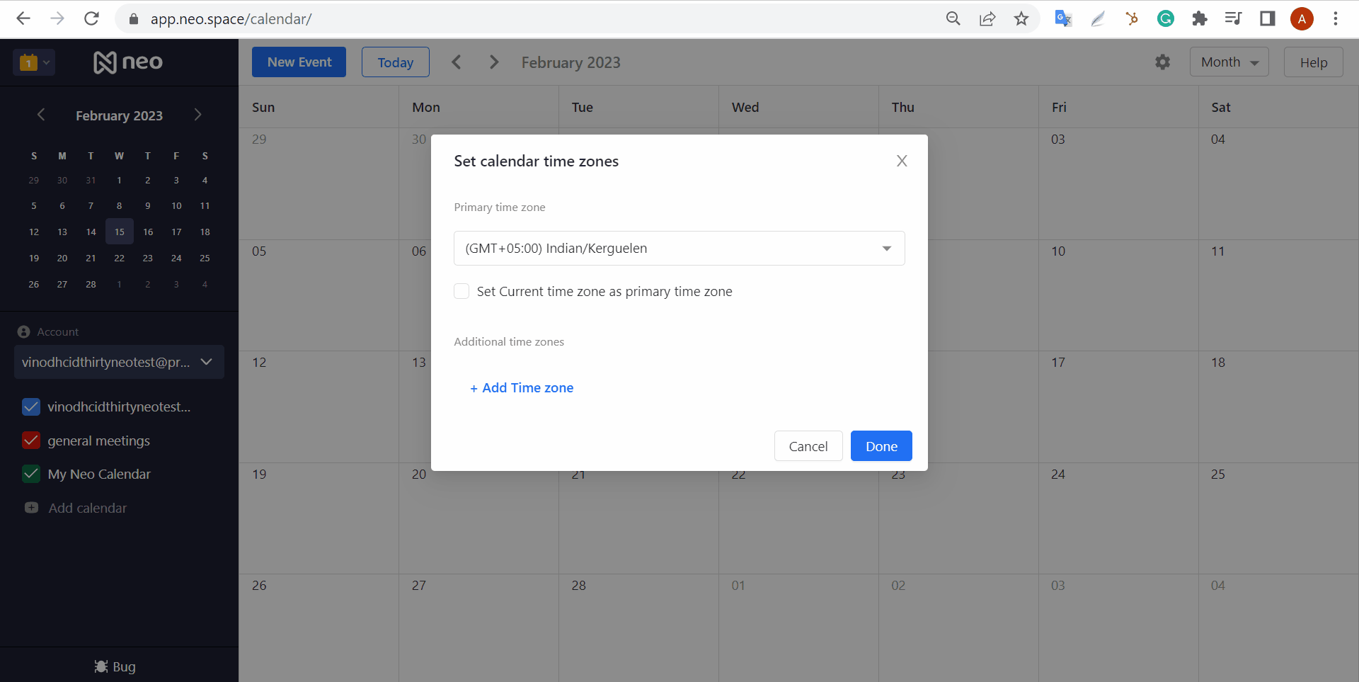 Set Calendar Time zones Neo Business