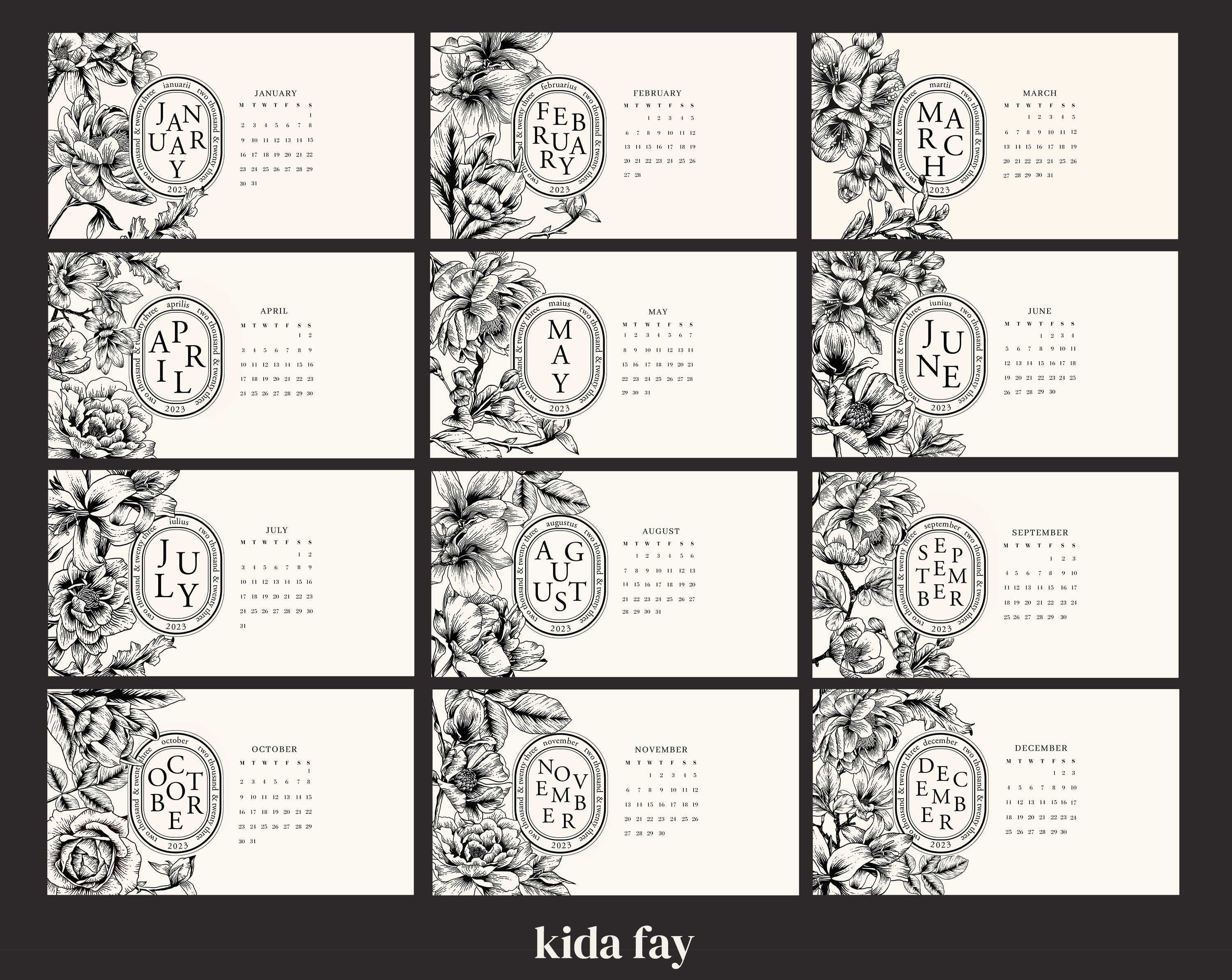 2025 Monthly Desktop Wallpaper Calendar Botanical Floral Etsy