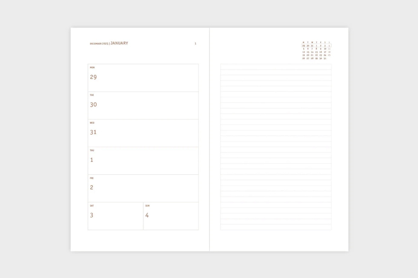 Copper Light weekly calendar 2026 Papierniczeni Frost