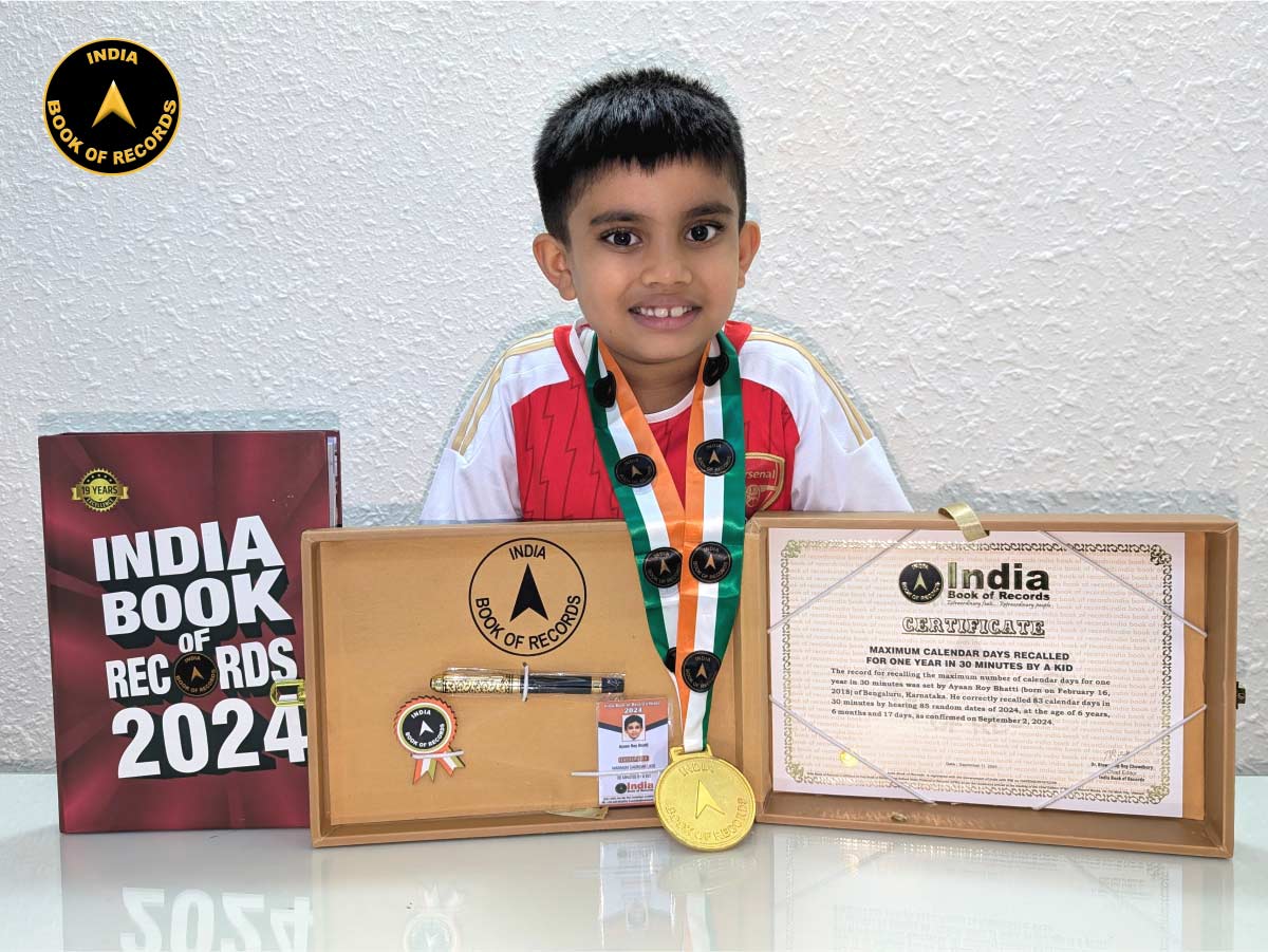 Maximum calendar days recalled for one year in 30 minutes by a kid